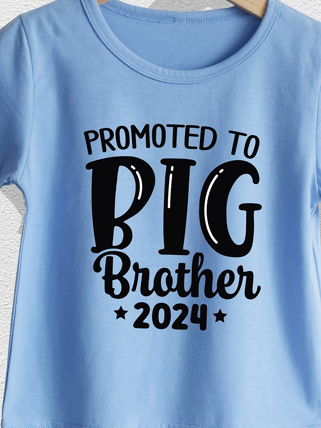 Boy’s Promoted To Big Brother 2024 Print Creative Tee Tops Clothes